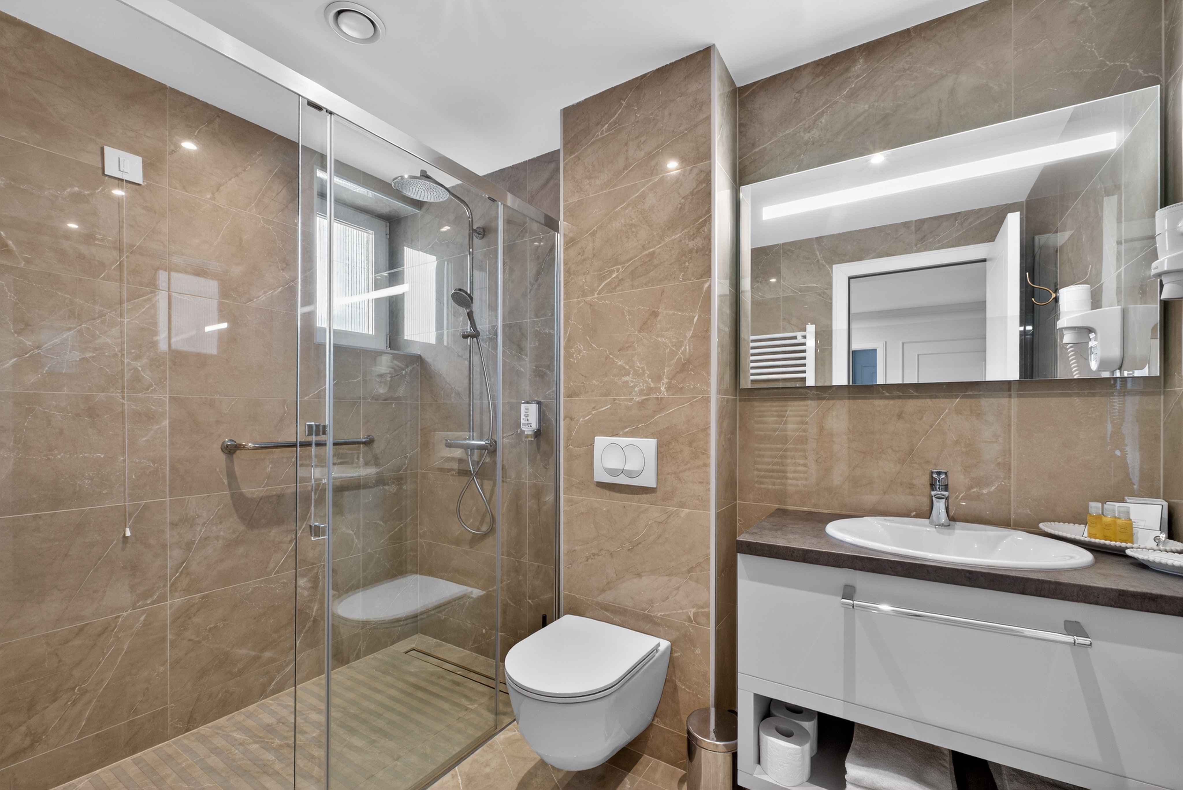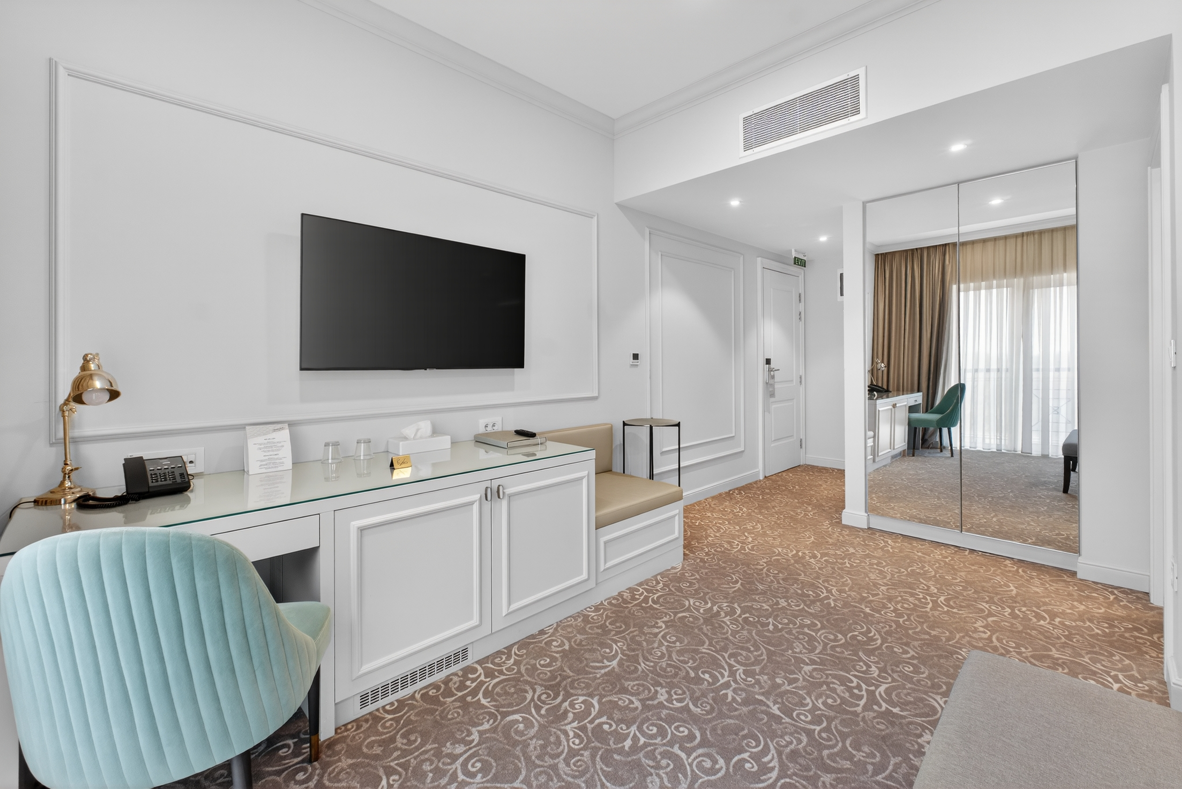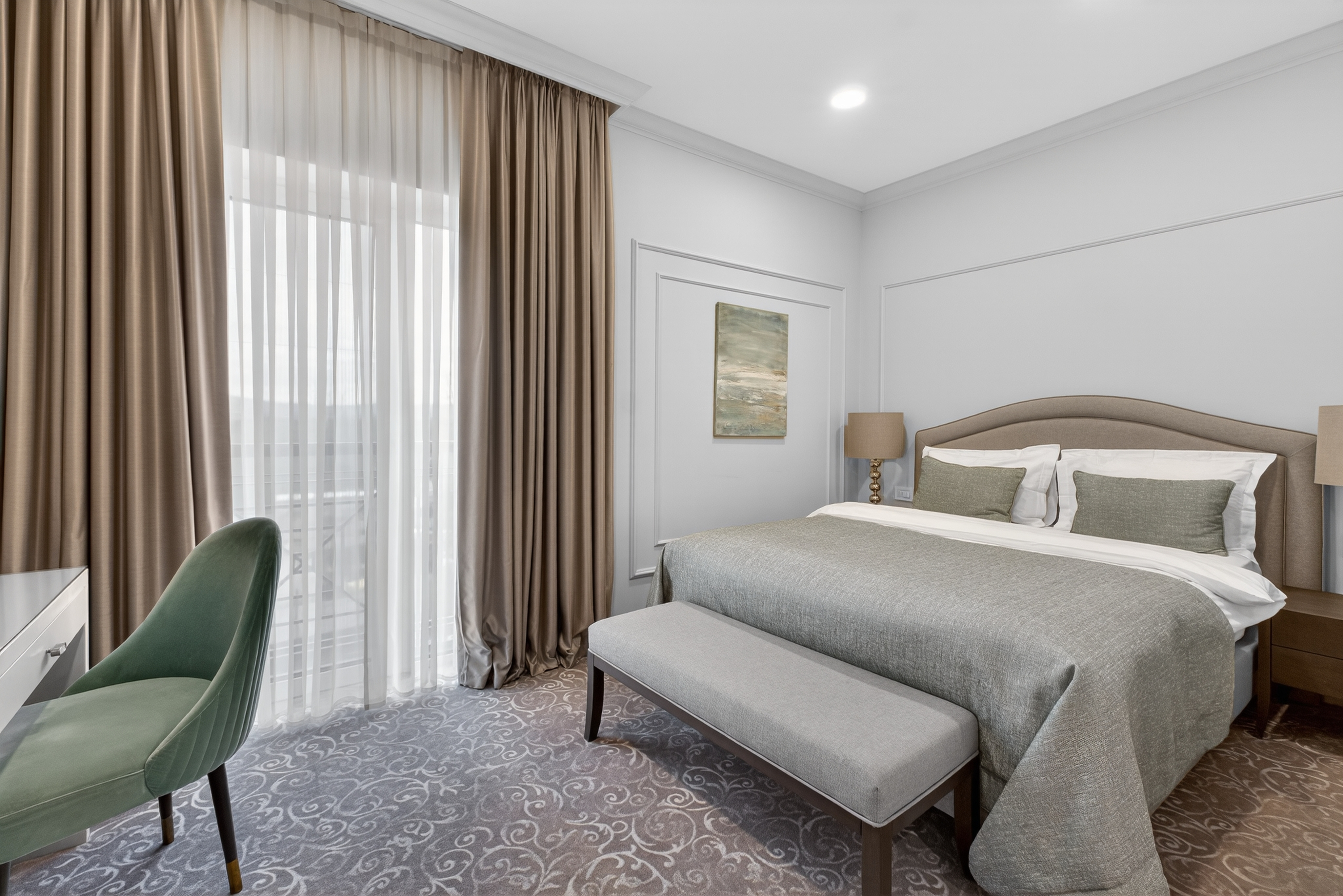 Lux apartman sa pogledom na vrt pruža savršenu kombinaciju luksuza i prirode. Zvučno izolovan prostor garantuje potpuni mir, dok veliki prozori omogućavaju prirodno svetlo i predivan pogled na zelene površine. Opremljen savremenom tehnologijom i kvalitetnim namještajem, ovaj apartman je idealan za goste koji traže vrhunski komfor i opuštajući ambijent.